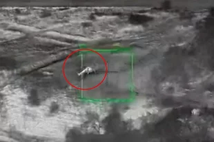 Министерство обороны РФ опубликовало съемку уничтожения вертолета Ми-8, стоявшего на вооружении украинских боевиков. Выявленная разведкой цель была поражена с помощью беспилотника «Герань».