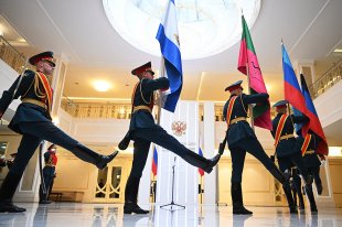 Торжественная церемония установки флагов новых регионов РФ в Совете Федерации.