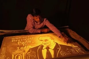 Индийский художник Кумар создал портрет Путина из песка