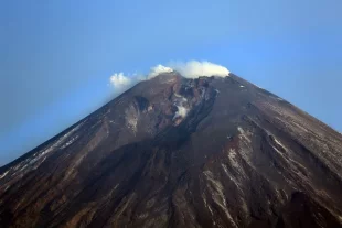 Над вершиной вулкана фиксируются мощные выбросы газа и пара.
