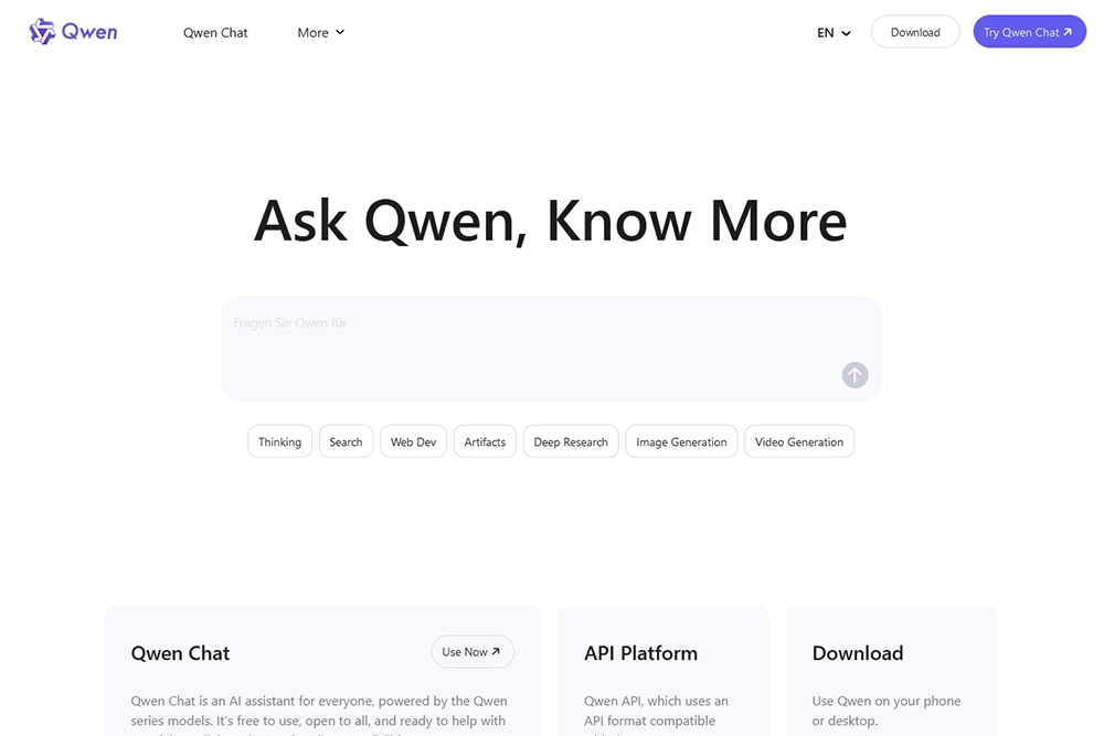 Qwen — серия больших языковых моделей от компании Alibaba Cloud. Модель активно продвигается как китайский аналог GPT, доступный для свободного использования в исследовательских и коммерческих целях.
