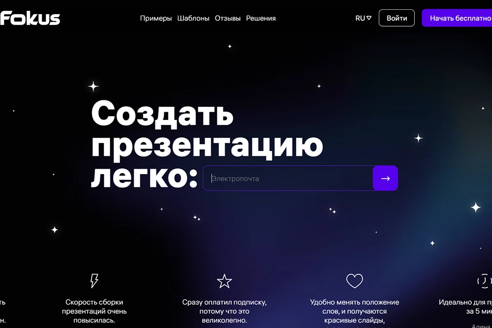 Сервис поможет сэкономить время на рутинных задачах и убрать страх чистого листа, особенно у тех, кто не умеет или не хочет тратить часы в PowerPoint или Google Slides. Все происходит автоматически: заголовки, подзаголовки, оформление, логика повествования.