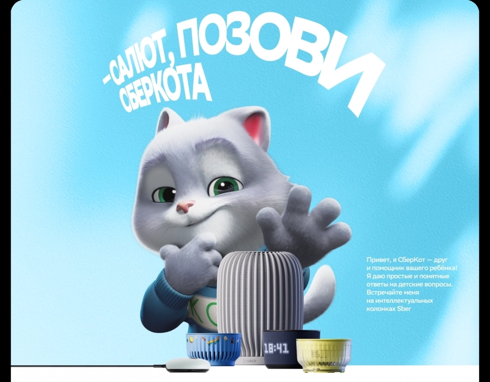 СберКот успел хорошо зарекомендовать себя в работе с детьми — как друг, с которым можно поговорить на разные темы, так и советчик по финансовым вопросам. В новой роли в качестве детского персонажа в колонках он также поддерживает любознательность, дает полезные рекомендации, а еще включает музыку и проактивно вовлекает в беседу маленьких непосед. При этом разговаривает с ребёнком на одном языке и никогда не даст вредный совет, так как бережно подбирает формулировки при общении с детьми.